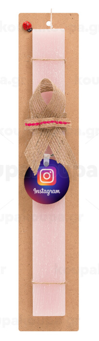 Instagram, Easter Set, wooden keychain & scented flat Easter candle (30cm) (PINK)