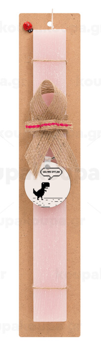 You are offline dinosaur, Easter Set, wooden keychain & scented flat Easter candle (30cm) (PINK)