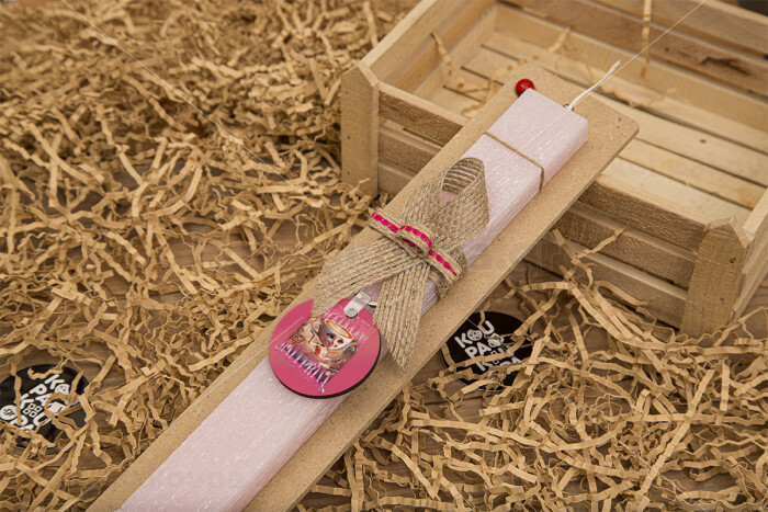 BALLERINA CAPUCHINA FUNK, Easter Set, wooden keychain & scented flat Easter candle (30cm) (PINK)