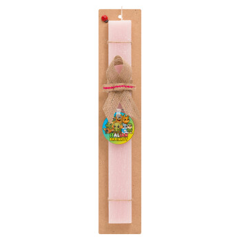 Italian Brainrot friends, Easter Set, wooden keychain & scented flat Easter candle (30cm) (PINK)