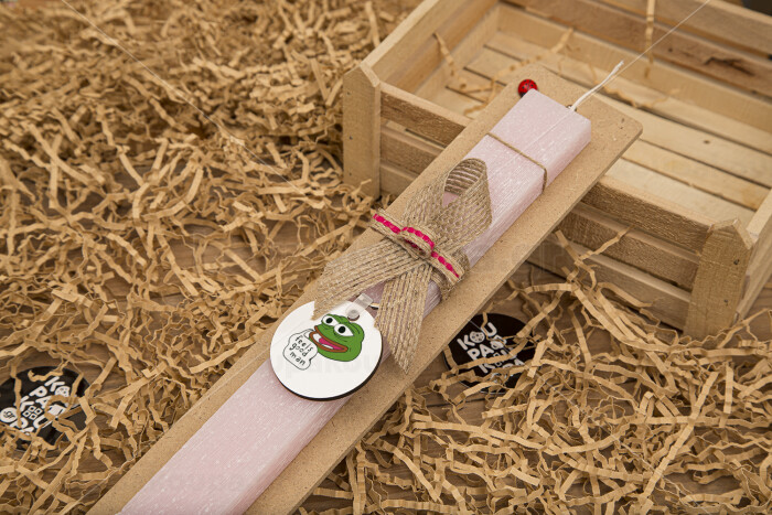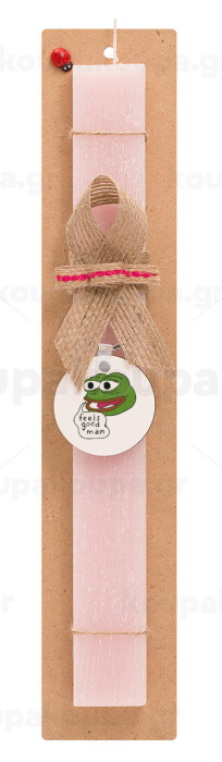Pepe the frog, Easter Set, wooden keychain & scented flat Easter candle (30cm) (PINK)