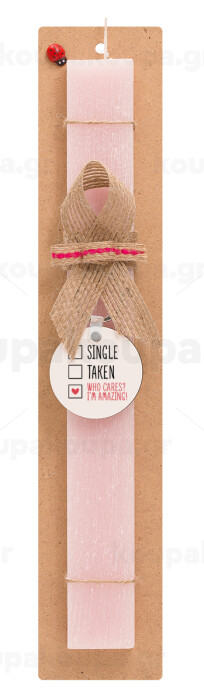 Single, Taken, Who cares i'm amazing, Easter Set, wooden keychain & scented flat Easter candle (30cm) (PINK)