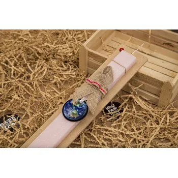 Planet Earth, Easter Set, wooden keychain & scented flat Easter candle (30cm) (PINK)