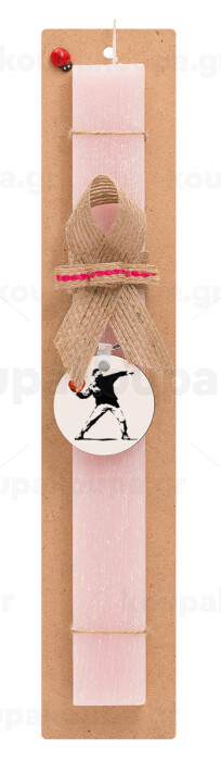 Banksy (The heart thrower), Easter Set, wooden keychain & scented flat Easter candle (30cm) (PINK)