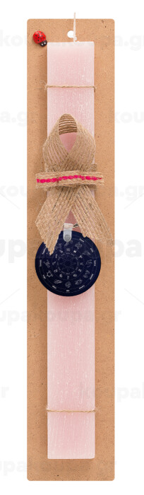 Ζωδιακός κύκλος, Easter Set, wooden keychain & scented flat Easter candle (30cm) (PINK)