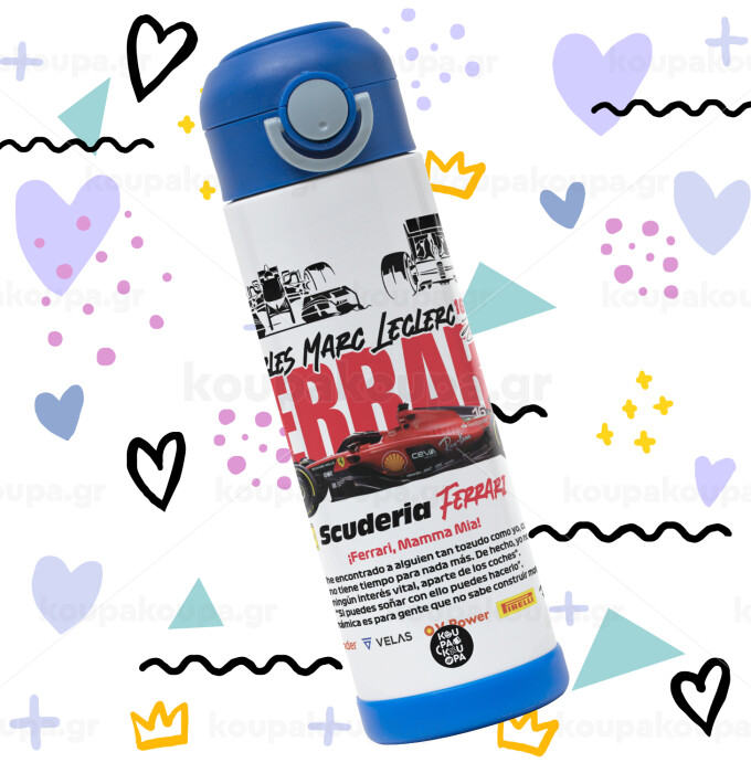 F1 Ferrari, Easter candle, Childrens hot water bottle, stainless steel, with safety straw, BLUE (500ml)