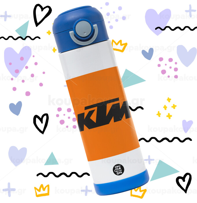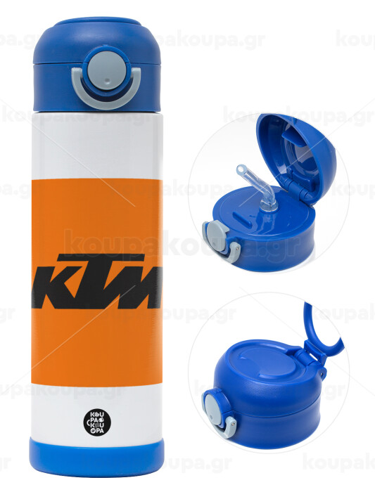 KTM, Easter candle, Childrens hot water bottle, stainless steel, with safety straw, BLUE (500ml)