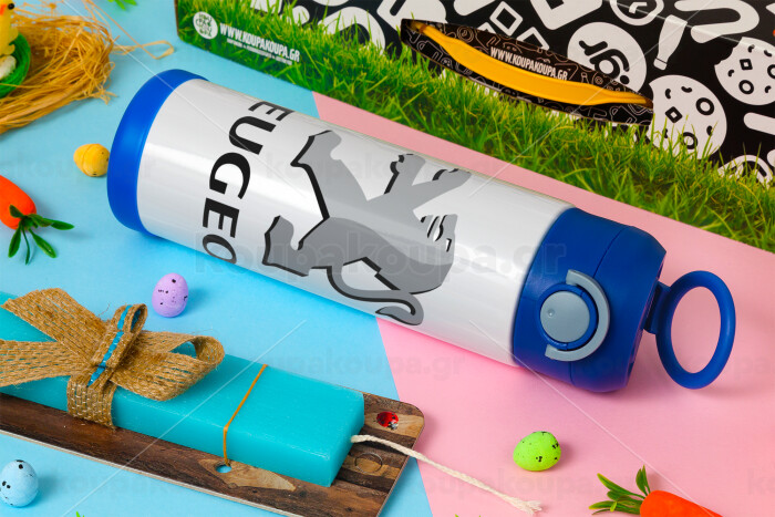 Peugeot, Easter candle, Childrens hot water bottle, stainless steel, with safety straw, BLUE (500ml)
