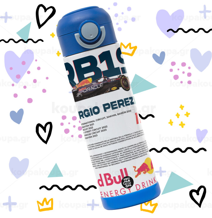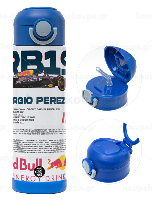 Redbull Sergio Perezi, Easter candle, Childrens hot water bottle, stainless steel, with safety straw, BLUE (500ml)