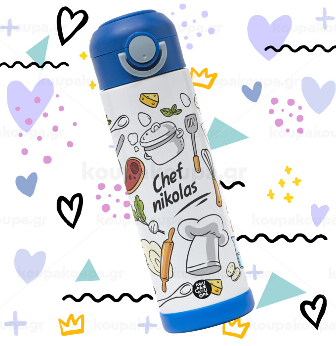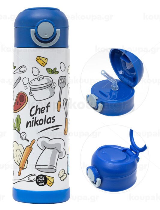 Chef με όνομα, Easter candle, Childrens hot water bottle, stainless steel, with safety straw, BLUE (500ml)