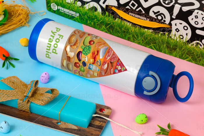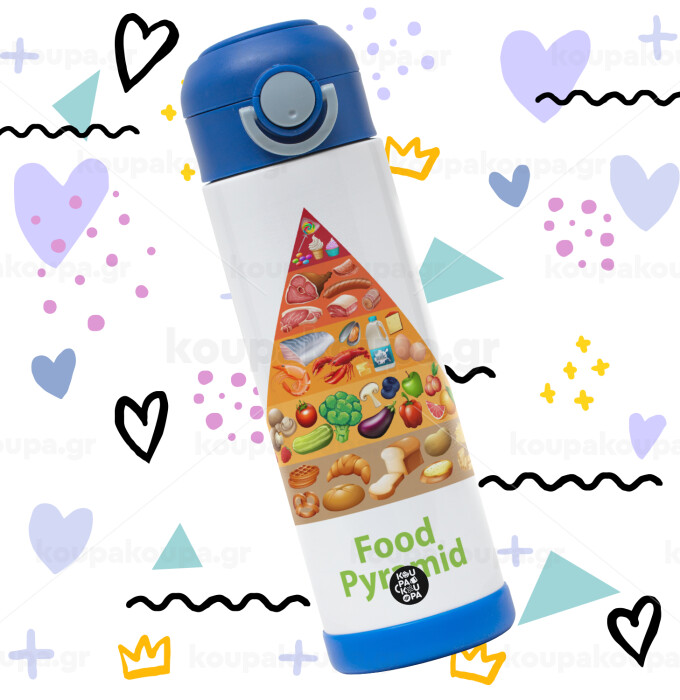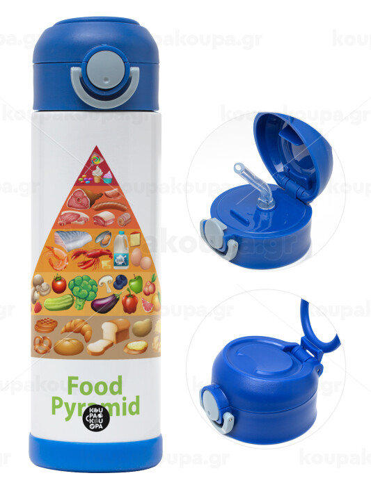 Food pyramid chart, Easter candle, Childrens hot water bottle, stainless steel, with safety straw, BLUE (500ml)