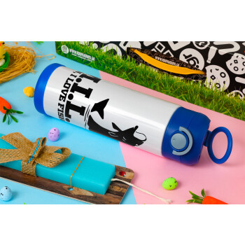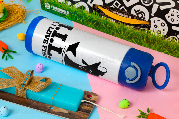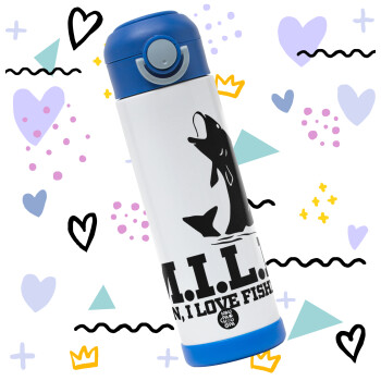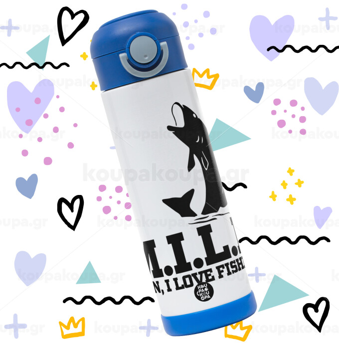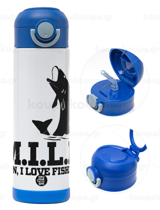 M.I.L.F. Mam i love fishing, Easter candle, Childrens hot water bottle, stainless steel, with safety straw, BLUE (500ml)