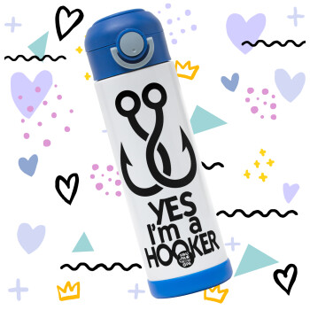 Yes i am Hooker, Easter candle, Childrens hot water bottle, stainless steel, with safety straw, BLUE (500ml)