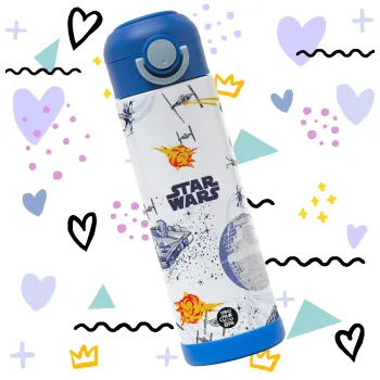 Star wars drawing, Easter candle, Childrens hot water bottle, stainless steel, with safety straw, BLUE (500ml)