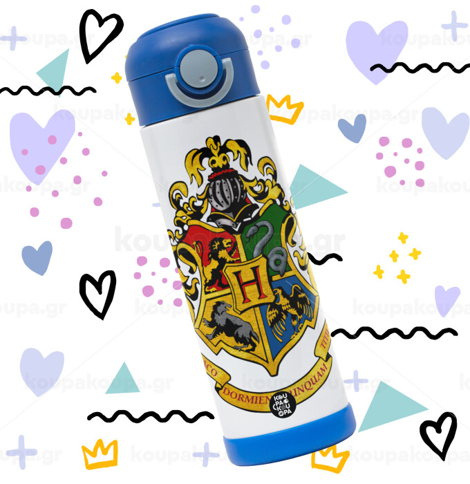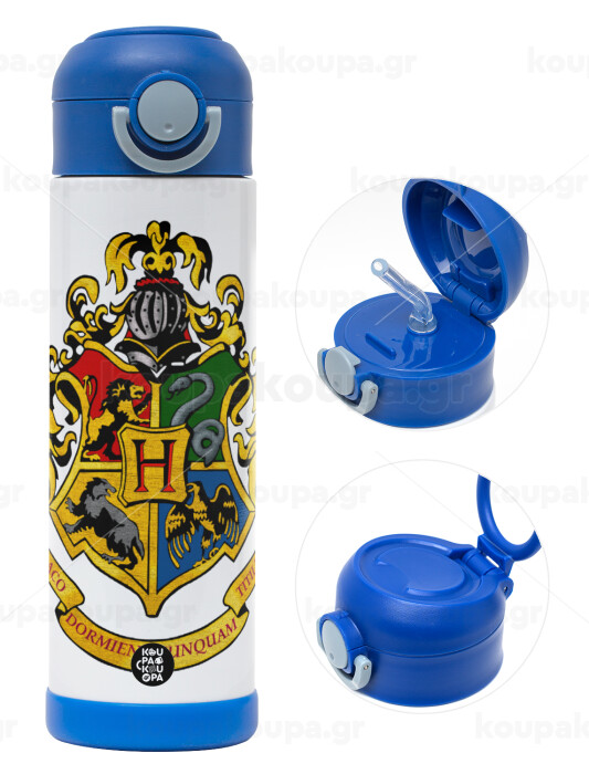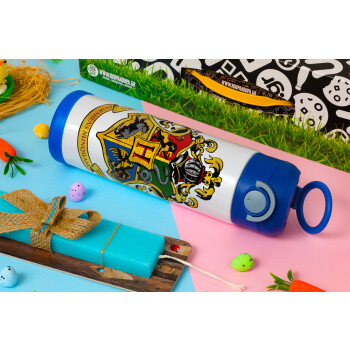 Hogwart's, Easter candle, Childrens hot water bottle, stainless steel, with safety straw, BLUE (500ml)