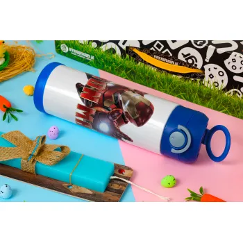 Ironman, Easter candle, Childrens hot water bottle, stainless steel, with safety straw, BLUE (500ml)