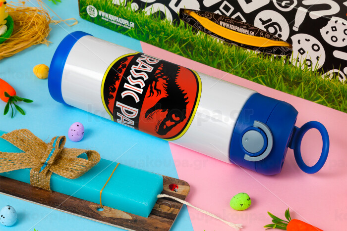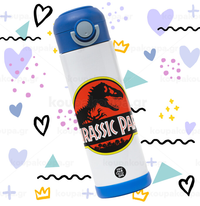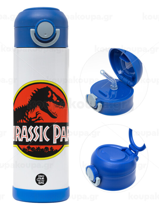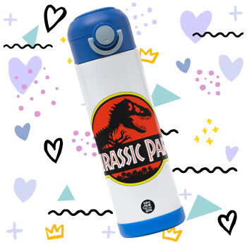 Jurassic park, Easter candle, Childrens hot water bottle, stainless steel, with safety straw, BLUE (500ml)