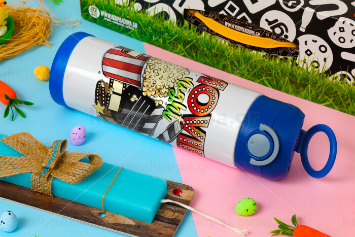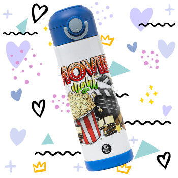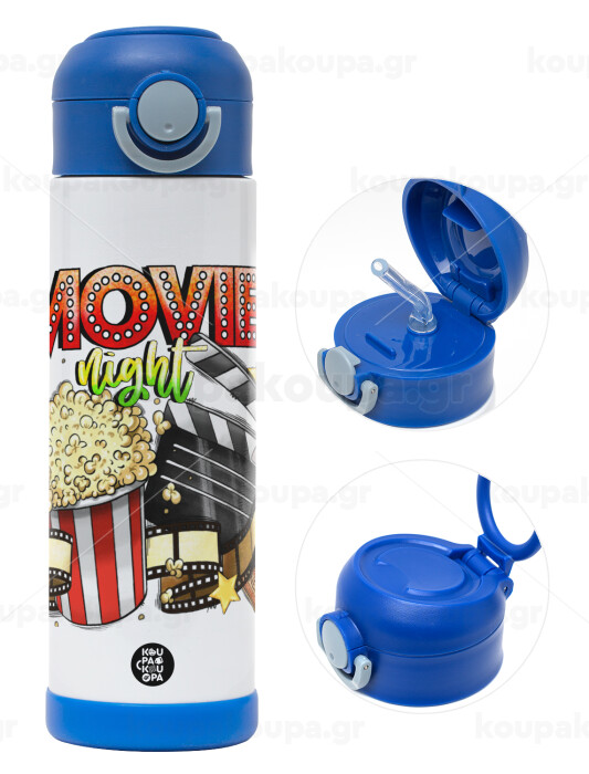 Movie night, Easter candle, Childrens hot water bottle, stainless steel, with safety straw, BLUE (500ml)