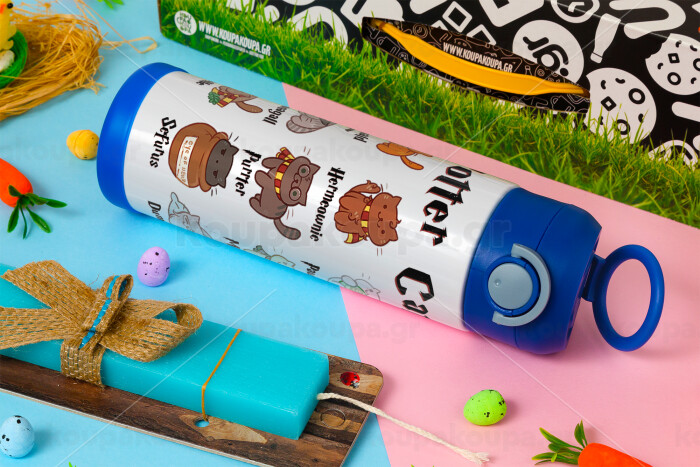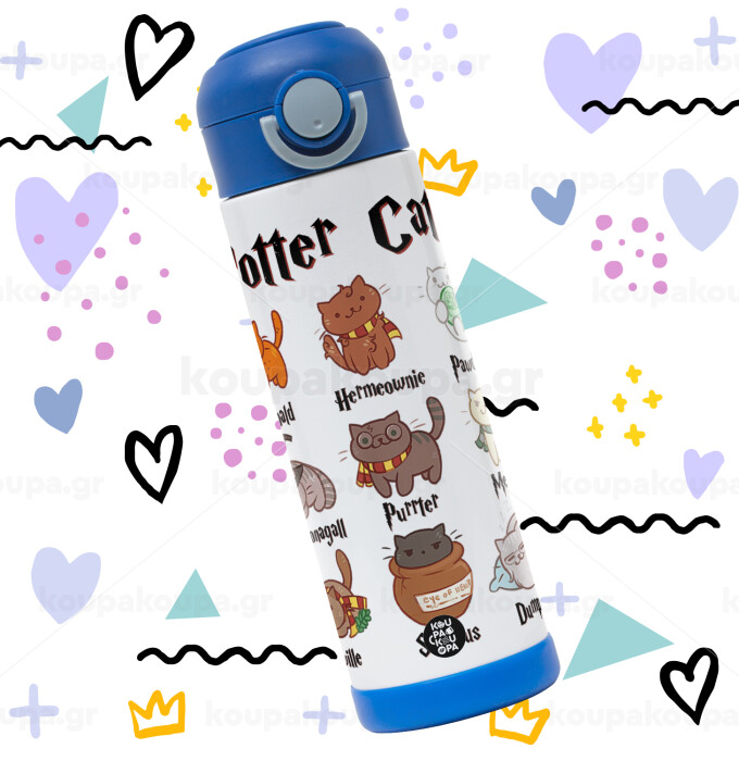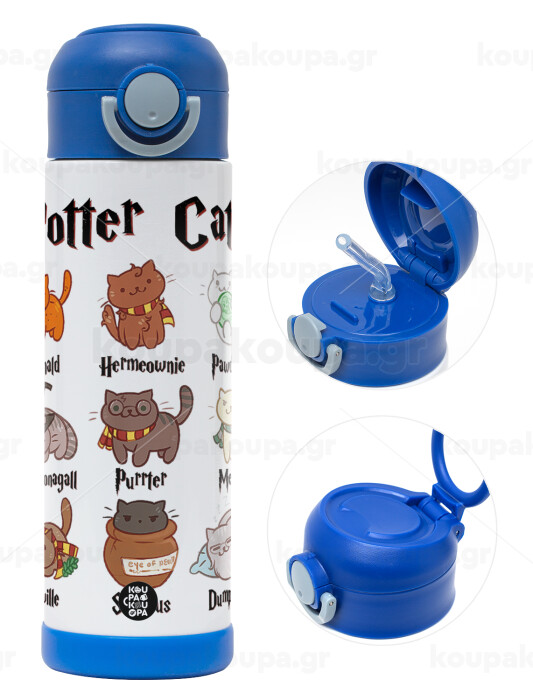 Potter Cats, Easter candle, Childrens hot water bottle, stainless steel, with safety straw, BLUE (500ml)