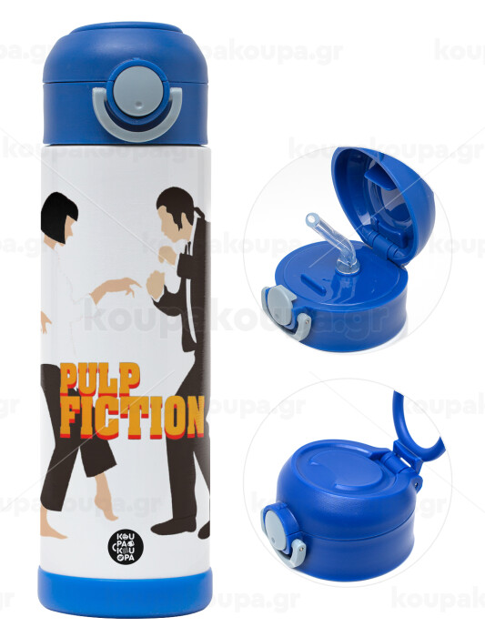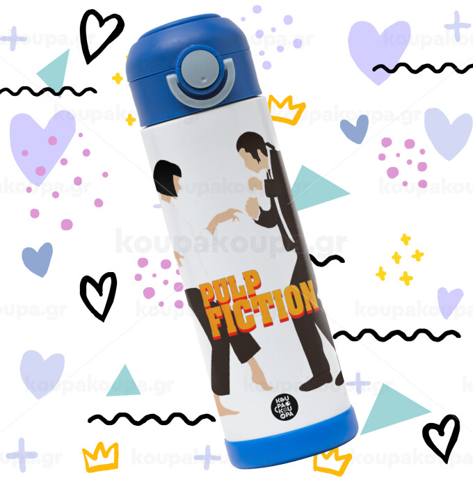 Pulp Fiction dancing, Easter candle, Childrens hot water bottle, stainless steel, with safety straw, BLUE (500ml)