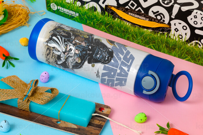 Star Wars, Easter candle, Childrens hot water bottle, stainless steel, with safety straw, BLUE (500ml)