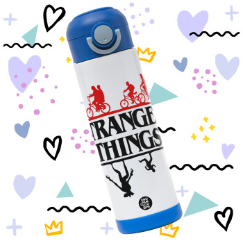 Stranger Things upside down, Easter candle, Childrens hot water bottle, stainless steel, with safety straw, BLUE (500ml)