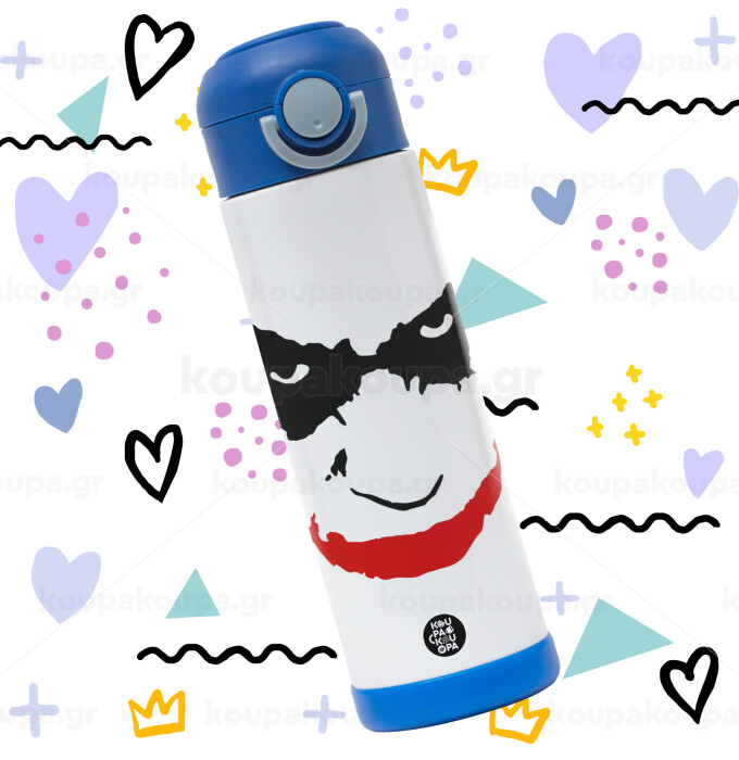 The joker smile, Easter candle, Childrens hot water bottle, stainless steel, with safety straw, BLUE (500ml)