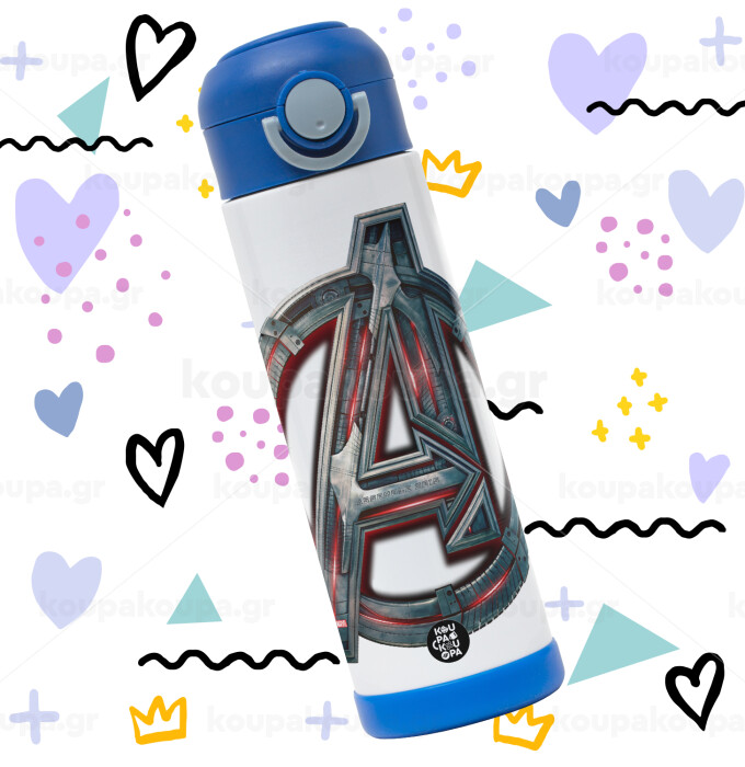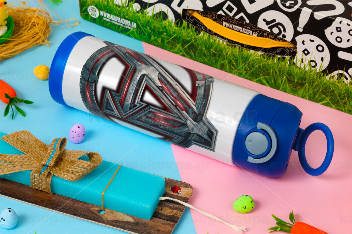 Avengers, Easter candle, Childrens hot water bottle, stainless steel, with safety straw, BLUE (500ml)
