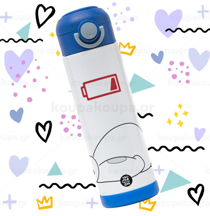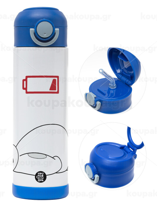 Baymax battery low, Easter candle, Childrens hot water bottle, stainless steel, with safety straw, BLUE (500ml)