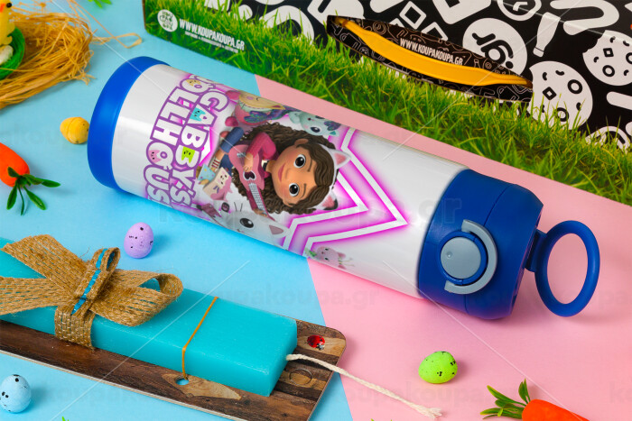 Gabby Dollhouse, Easter candle, Childrens hot water bottle, stainless steel, with safety straw, BLUE (500ml)