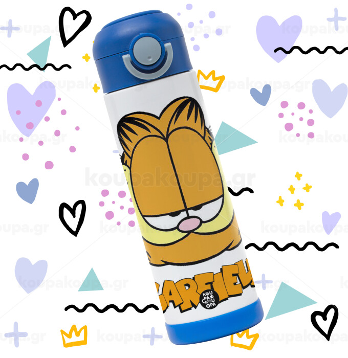 Garfield, Easter candle, Childrens hot water bottle, stainless steel, with safety straw, BLUE (500ml)