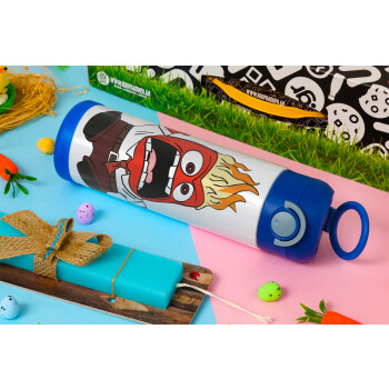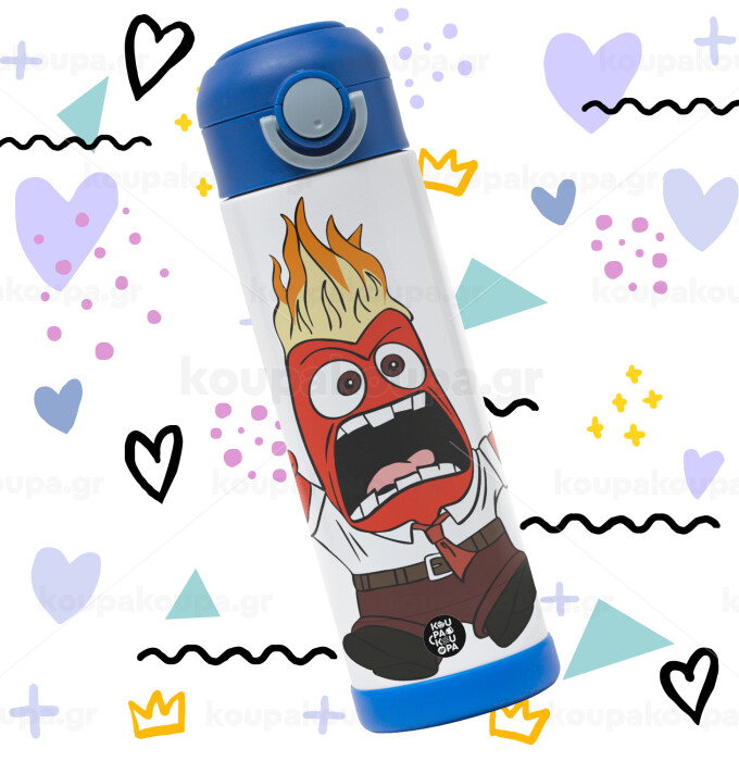 Inside Out Angry, Easter candle, Childrens hot water bottle, stainless steel, with safety straw, BLUE (500ml)