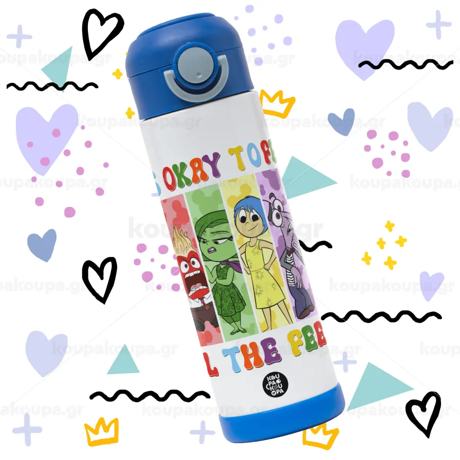 Inside Out It's Okay To Feel All The Feels , Easter candle, Childrens hot water bottle, stainless steel, with safety straw, BLUE (500ml)