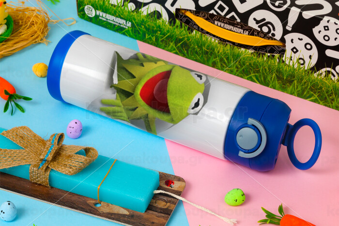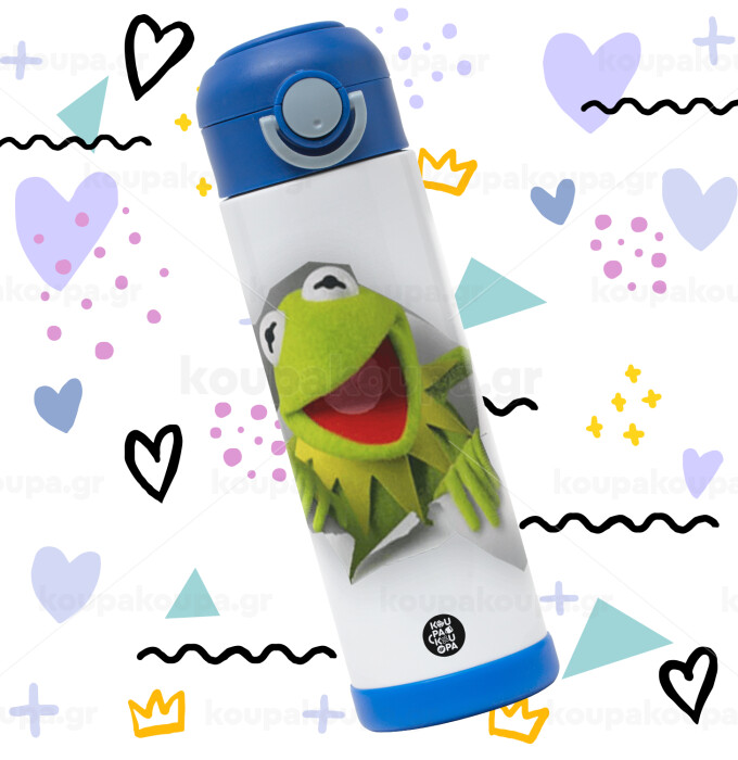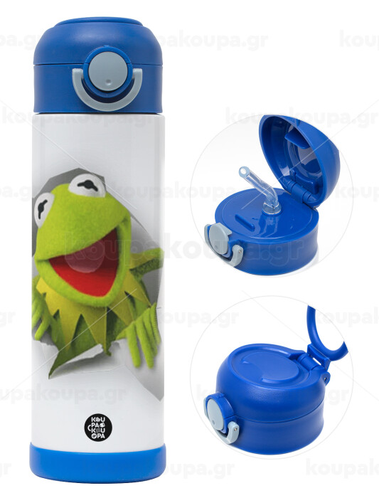Kermit the frog, Easter candle, Childrens hot water bottle, stainless steel, with safety straw, BLUE (500ml)