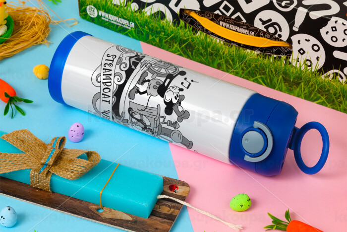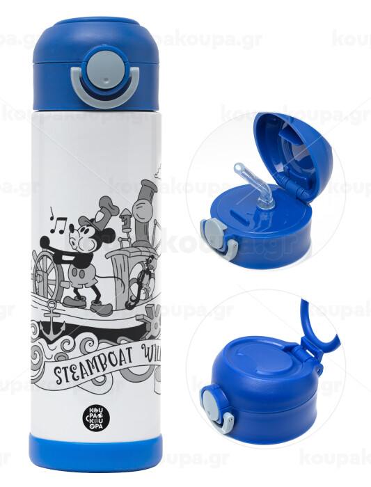 Mickey steamboat, Easter candle, Childrens hot water bottle, stainless steel, with safety straw, BLUE (500ml)