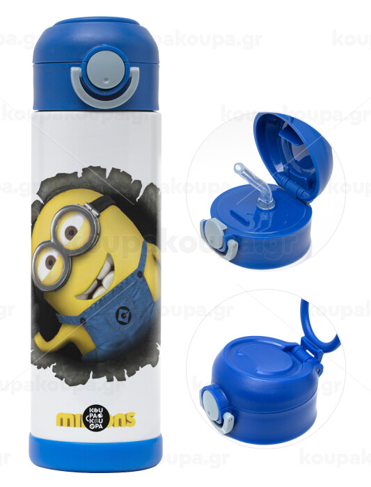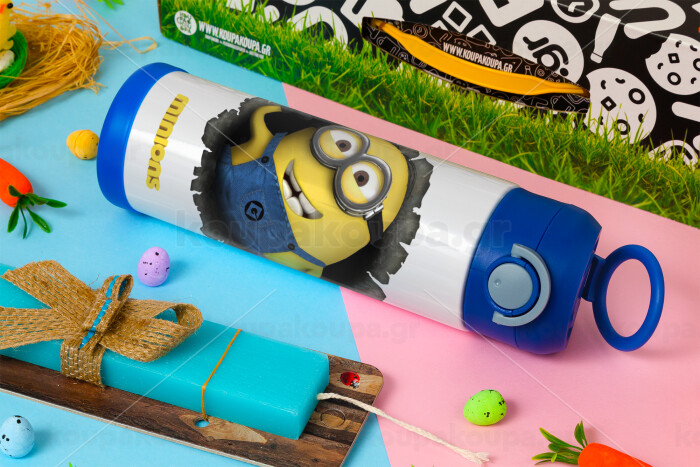 Minions hi, Easter candle, Childrens hot water bottle, stainless steel, with safety straw, BLUE (500ml)
