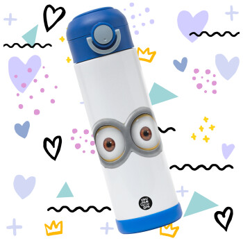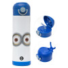 Minions, Easter candle, Childrens hot water bottle, stainless steel, with safety straw, BLUE (500ml)