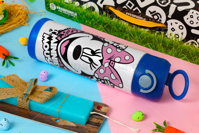 Minnie mouse, Easter candle, Childrens hot water bottle, stainless steel, with safety straw, BLUE (500ml)