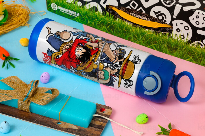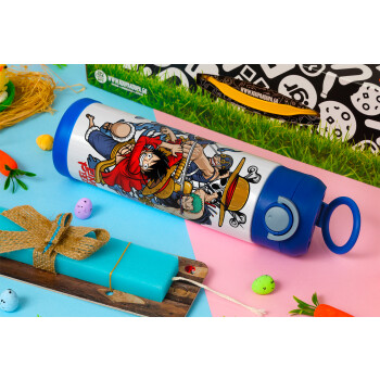 One Piece, Easter candle, Childrens hot water bottle, stainless steel, with safety straw, BLUE (500ml)