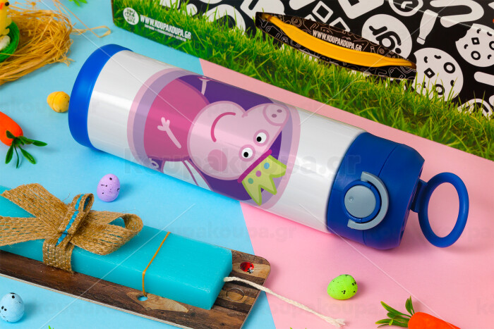 Peppa pig Queen, Easter candle, Childrens hot water bottle, stainless steel, with safety straw, BLUE (500ml)