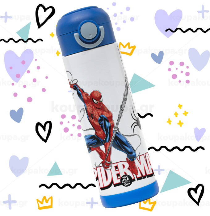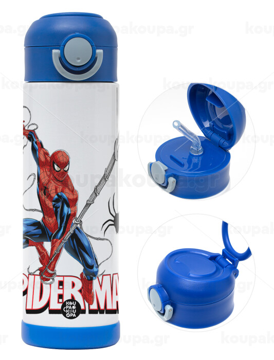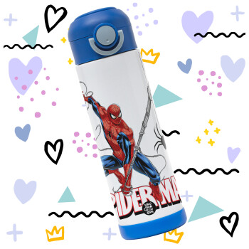 Spiderman fly, Easter candle, Childrens hot water bottle, stainless steel, with safety straw, BLUE (500ml)