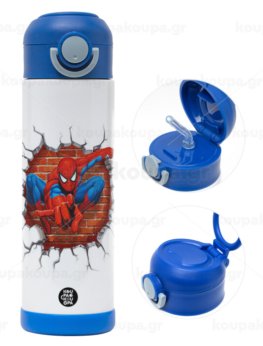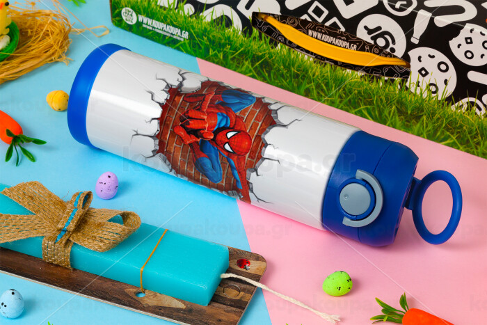 Spiderman wall, Easter candle, Childrens hot water bottle, stainless steel, with safety straw, BLUE (500ml)