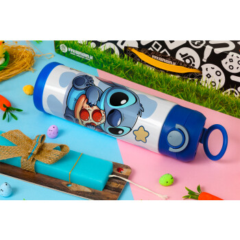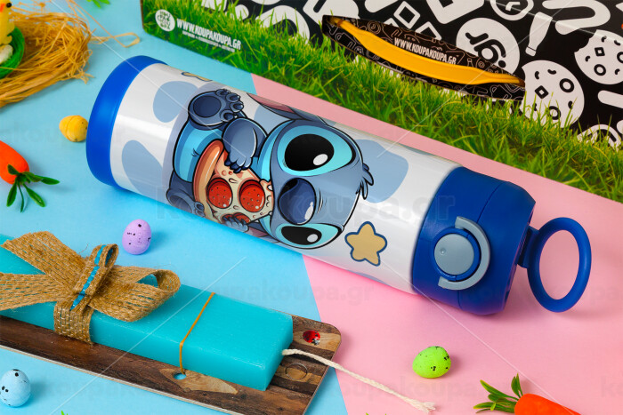Stitch Pizza, Easter candle, Childrens hot water bottle, stainless steel, with safety straw, BLUE (500ml)