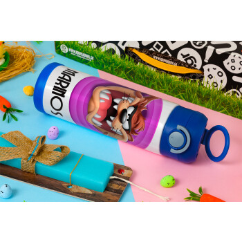 Taz, Easter candle, Childrens hot water bottle, stainless steel, with safety straw, BLUE (500ml)