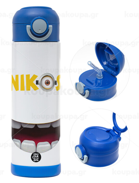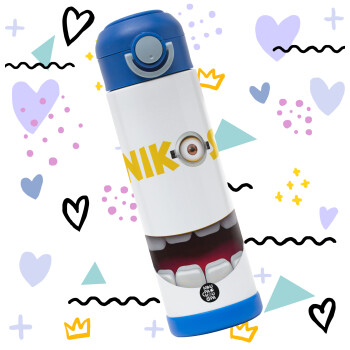 The minions, Easter candle, Childrens hot water bottle, stainless steel, with safety straw, BLUE (500ml)