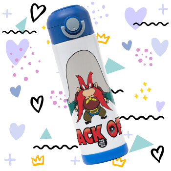 Yosemite Sam Back OFF, Easter candle, Childrens hot water bottle, stainless steel, with safety straw, BLUE (500ml)