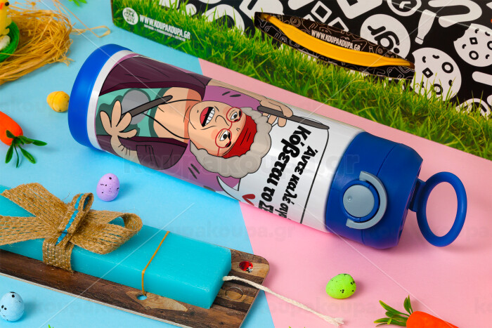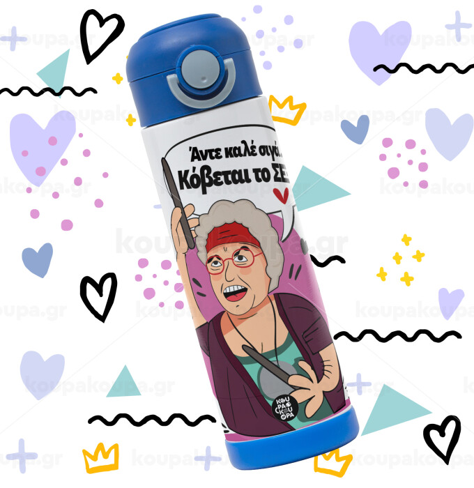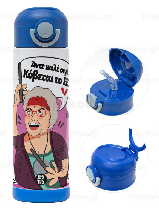 Αντε καλέ, σιγά, κόβεται το σέξ ;, Easter candle, Childrens hot water bottle, stainless steel, with safety straw, BLUE (500ml)