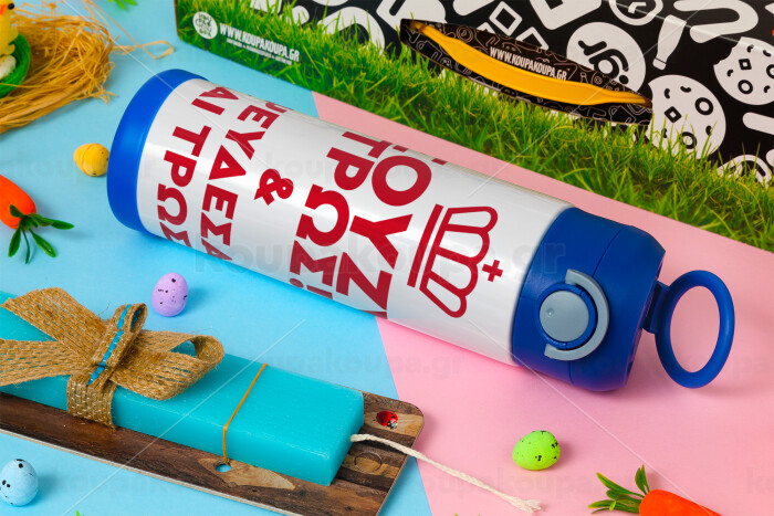 Σούζυ και ψεύδεσαι και τρως, Easter candle, Childrens hot water bottle, stainless steel, with safety straw, BLUE (500ml)