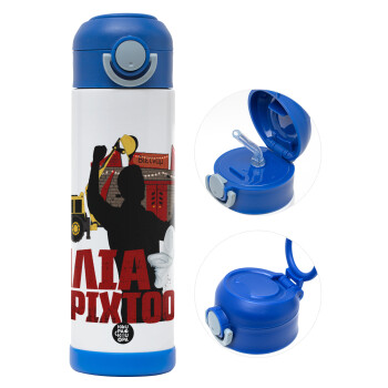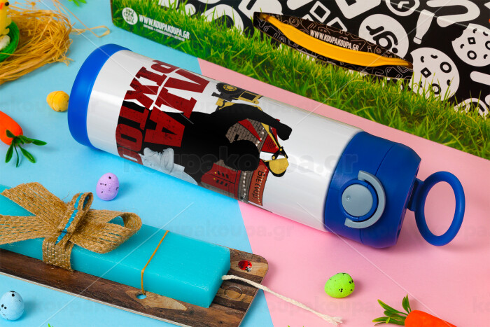 Ηλία ρίχτο!, Easter candle, Childrens hot water bottle, stainless steel, with safety straw, BLUE (500ml)