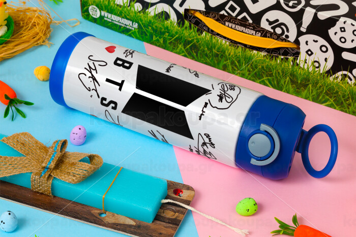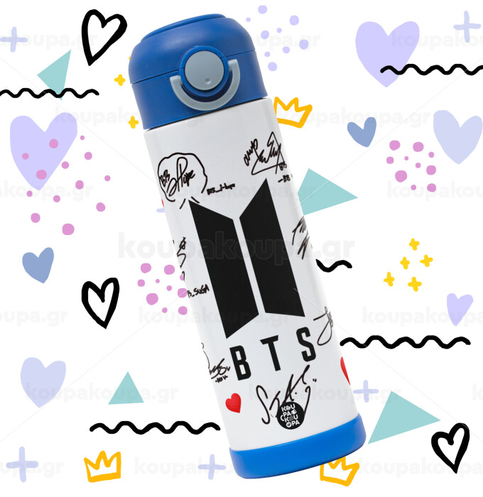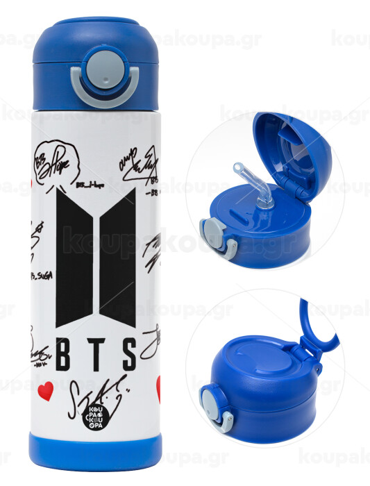BTS signs, Easter candle, Childrens hot water bottle, stainless steel, with safety straw, BLUE (500ml)